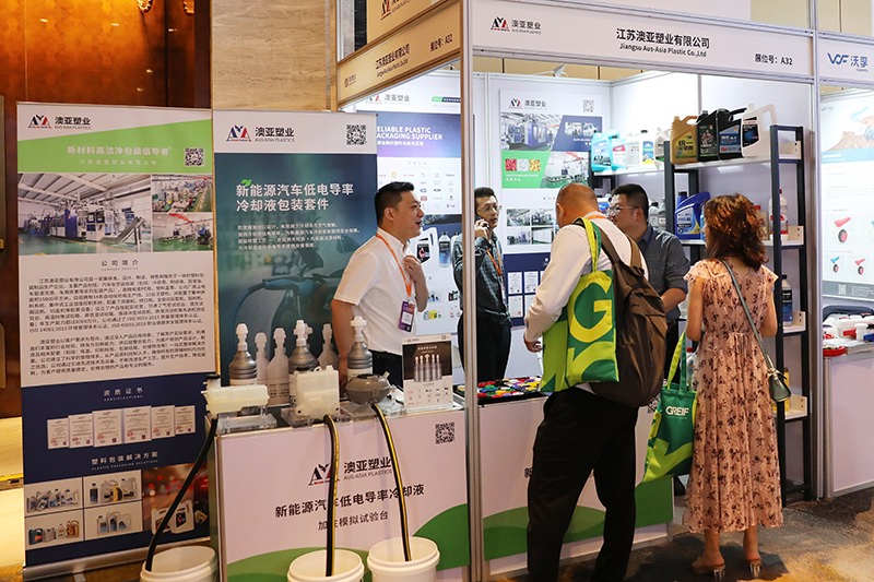 CPLF2024兩天的論壇共匯(huì)聚了超過655位來自化工及農化包裝(zhuāng)領域的嘉賓。與會(huì)包裝企業、采購方(fāng)、第三方機構等分享了循環經濟、綠色(sè)包裝案例、PCR品類行業情況等前沿話題。57家各類型的(de)包裝企業匯聚於此,集中(zhōng)展示了其各自的特色創新產品。作為該盛會的參展商之一(yī),江蘇羞羞小视频塑業有限公(gōng)司展示了多個係列的汽車(chē)化(huà)學品(pǐn)包裝產品,其中包括自主研發的新能源汽車(chē)低電導率(lǜ)冷卻液包裝套件等創新產品(pǐn)。